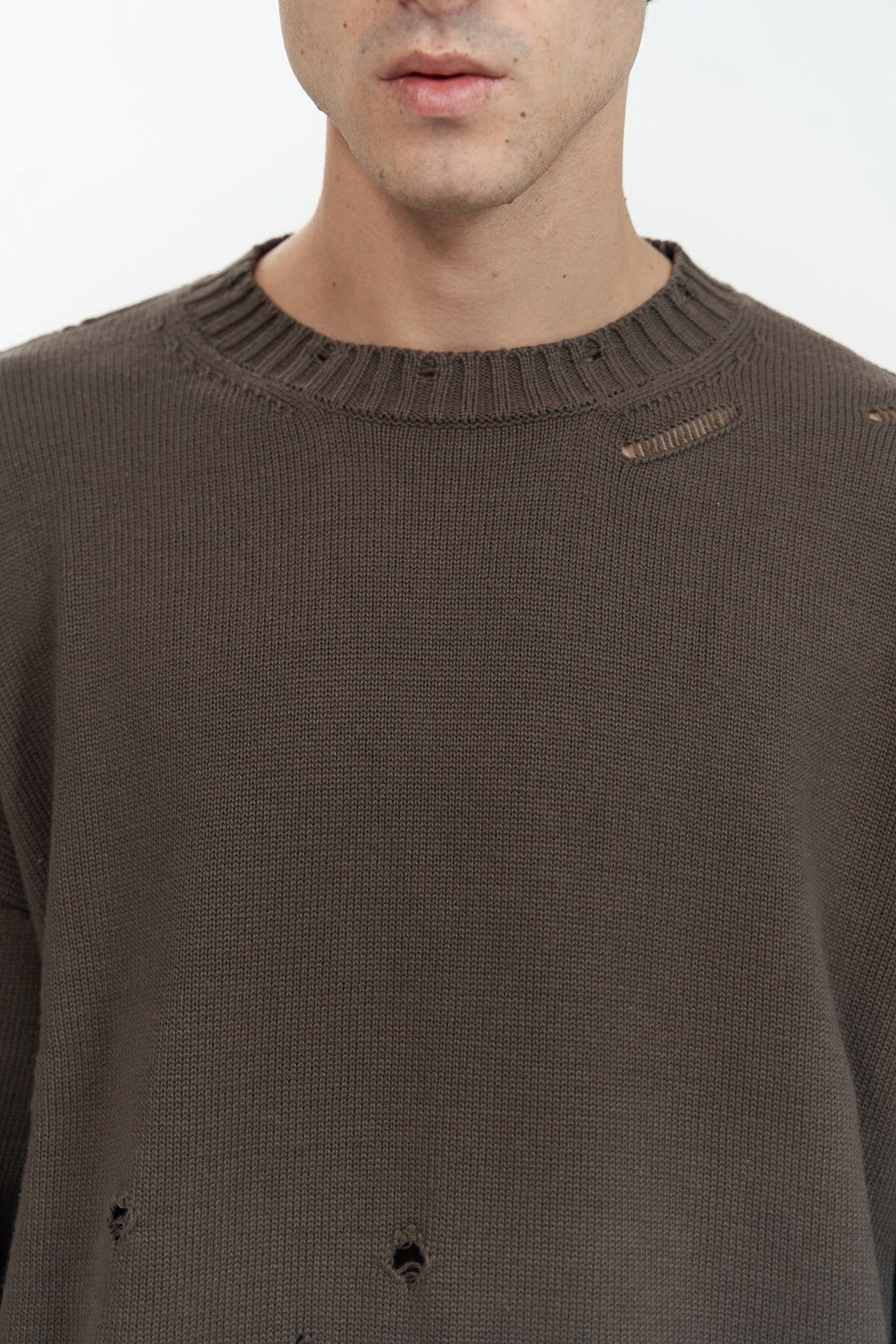 Alec Ribbed Ripped Detail Brown Men's Knitwear Sweater