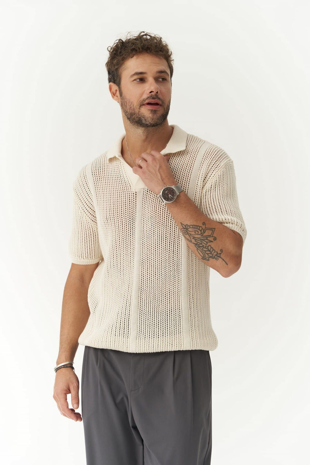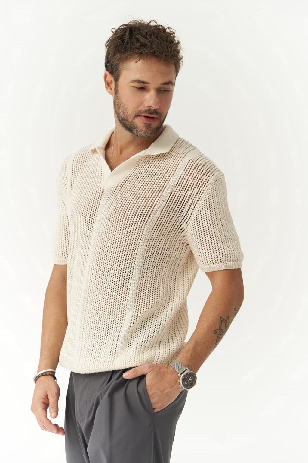 Looke Men's Line Detail Ecru Knitwear T-shirt